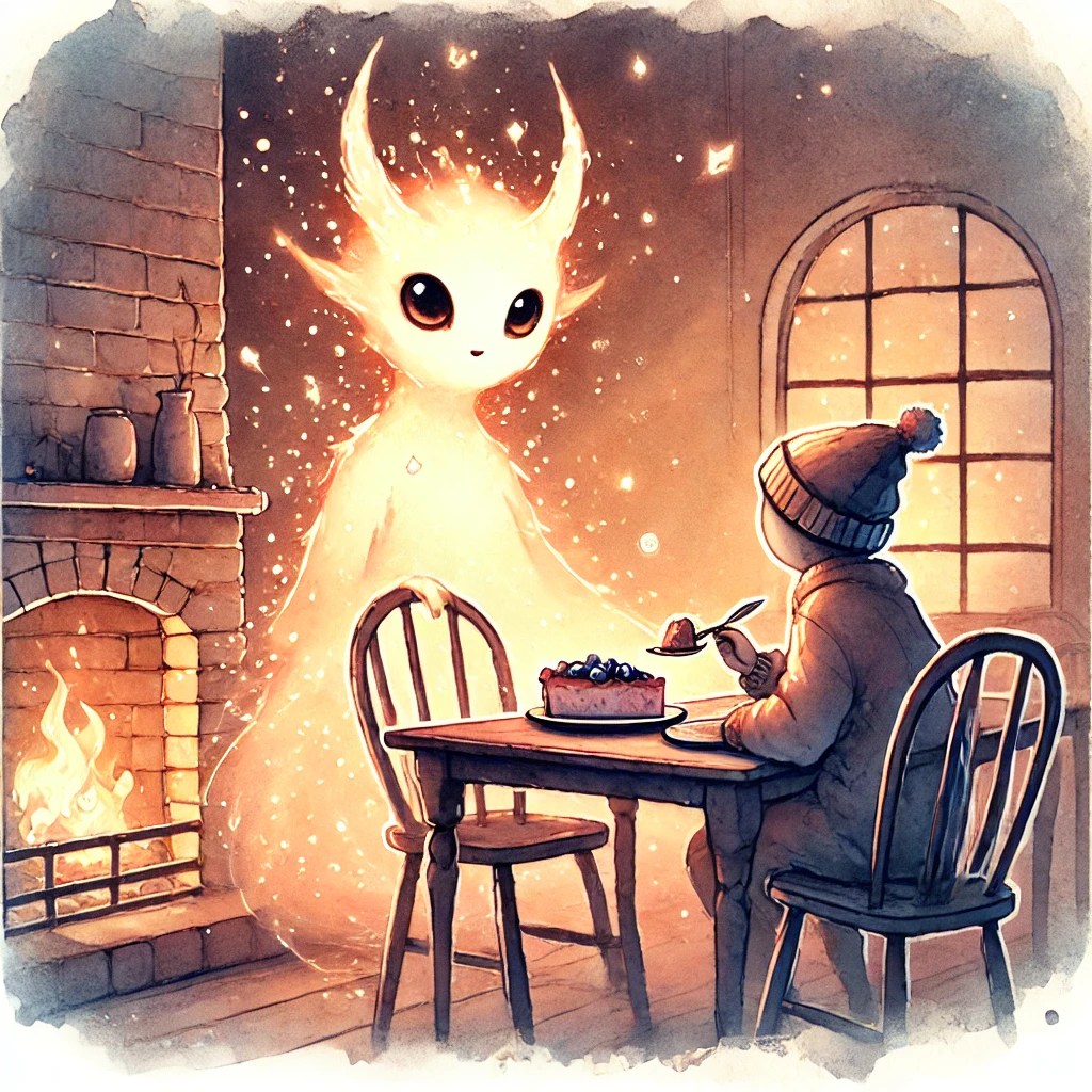 Ez tényszerű, ez nem vitás, e házban él egy entitás, de nem láthatja senki más, csak én. Segítik furcsa háncsporok. A füstjüktől itt csámborog, szeméből könnyként rám csorog a fény. De több ő, mint egy látomás, vagy mint szinapszis változás, hisz kedvence az áfonyás lepény. Épp, mint az enyém.